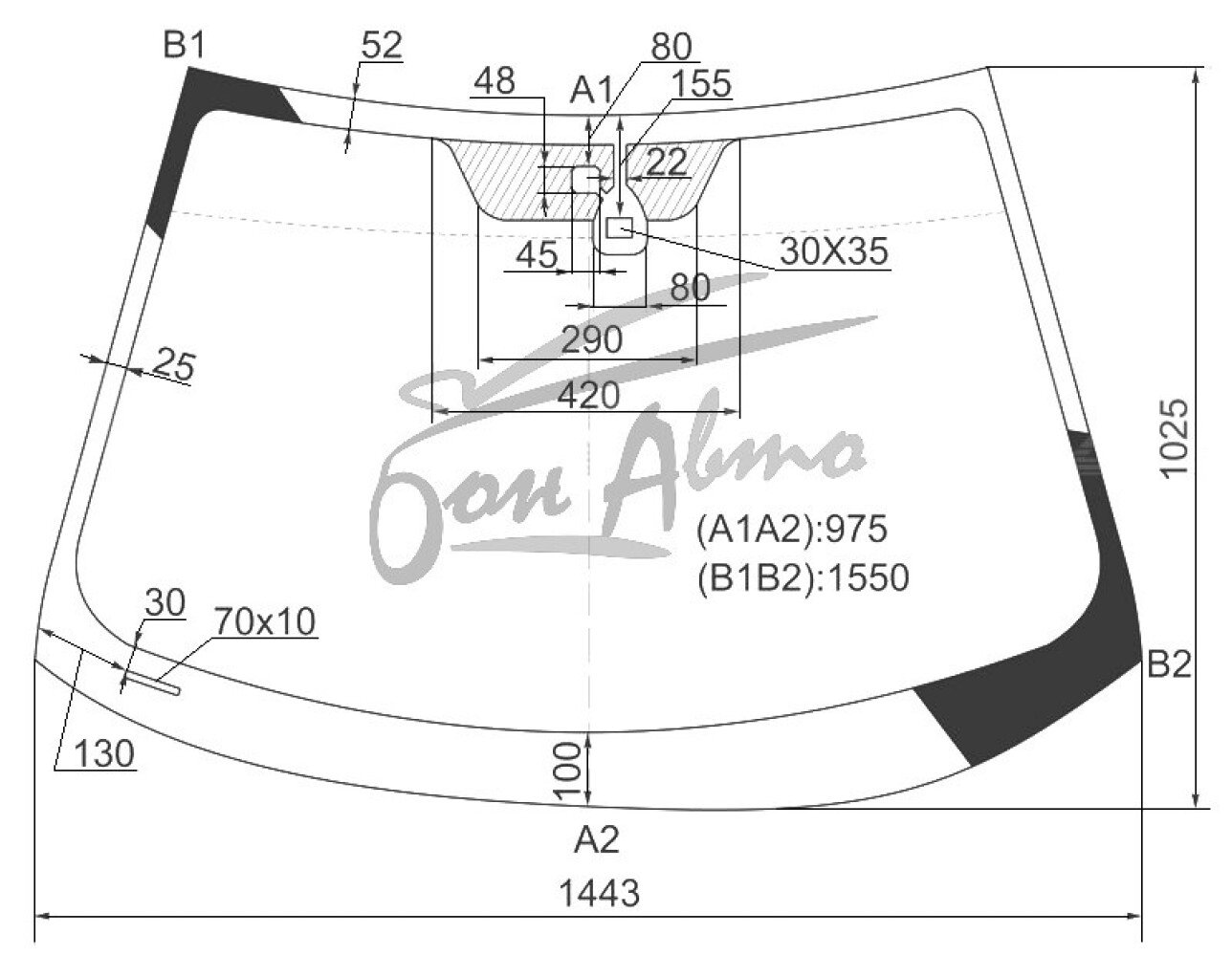 Стекло лобовое MITSUBISHI LANCER 2007- (CY-LHD) место под датчик дождя