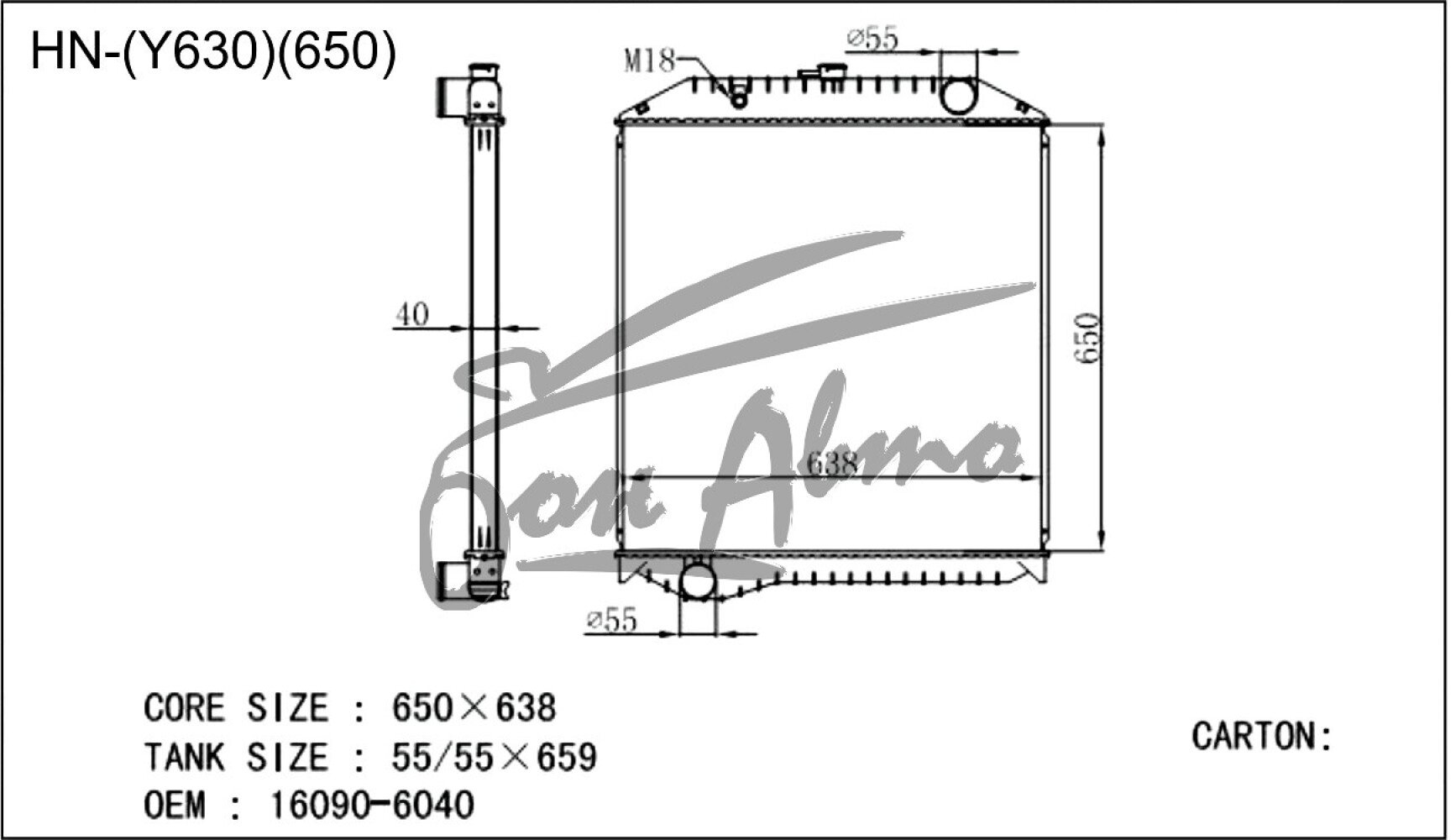 Радиатор HINO RANGER 1989- (F#,G#) /Y630-650 (J07,J08)