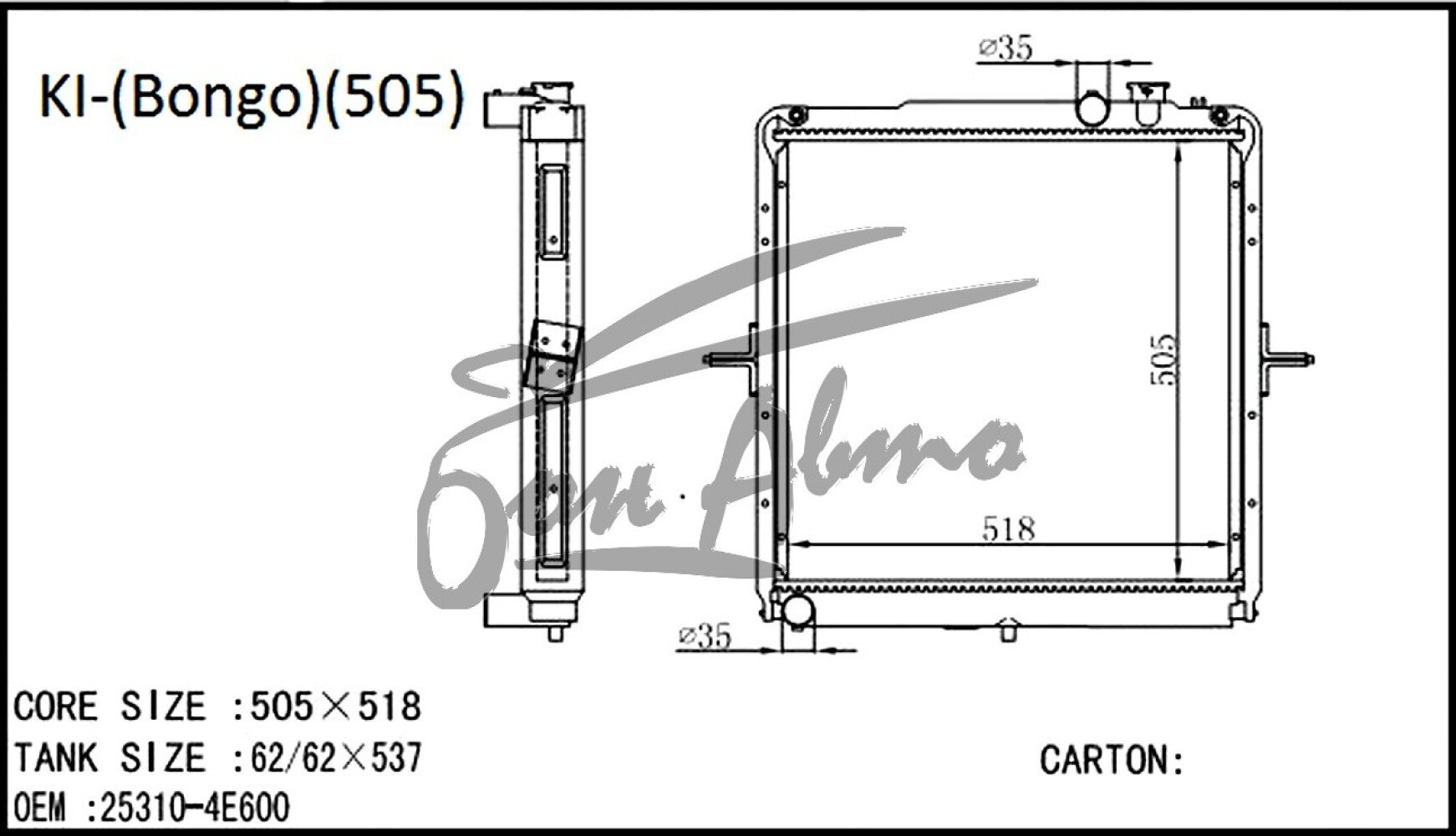 Радиатор KIA BONGO III 2004- () /505 (dies2.4,2.7)