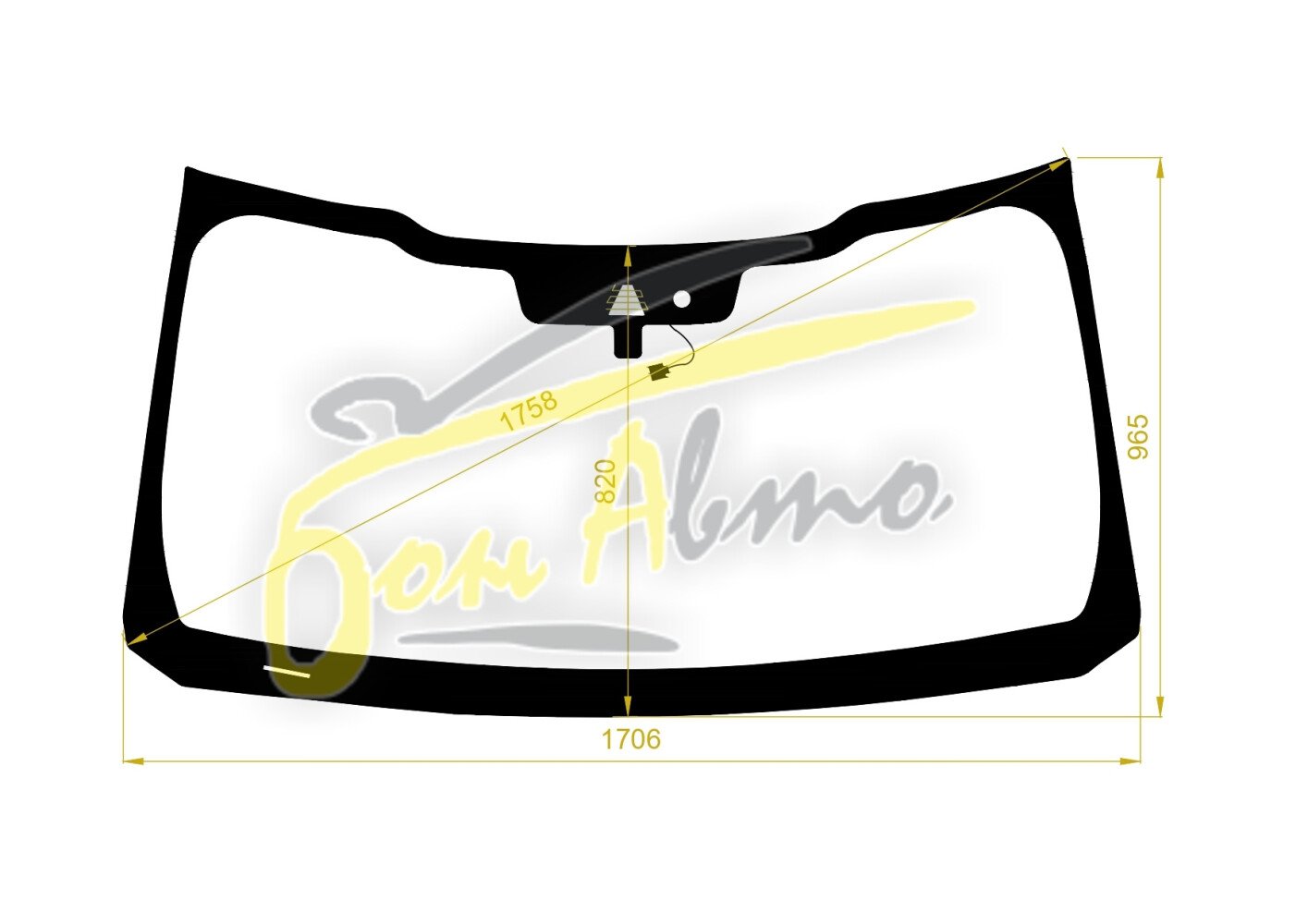 Стекло лобовое FORD F-SERIES 2020- (F150-1706*965) место под 1 камеру с обогревом, место под датчик дождя, молдинг,