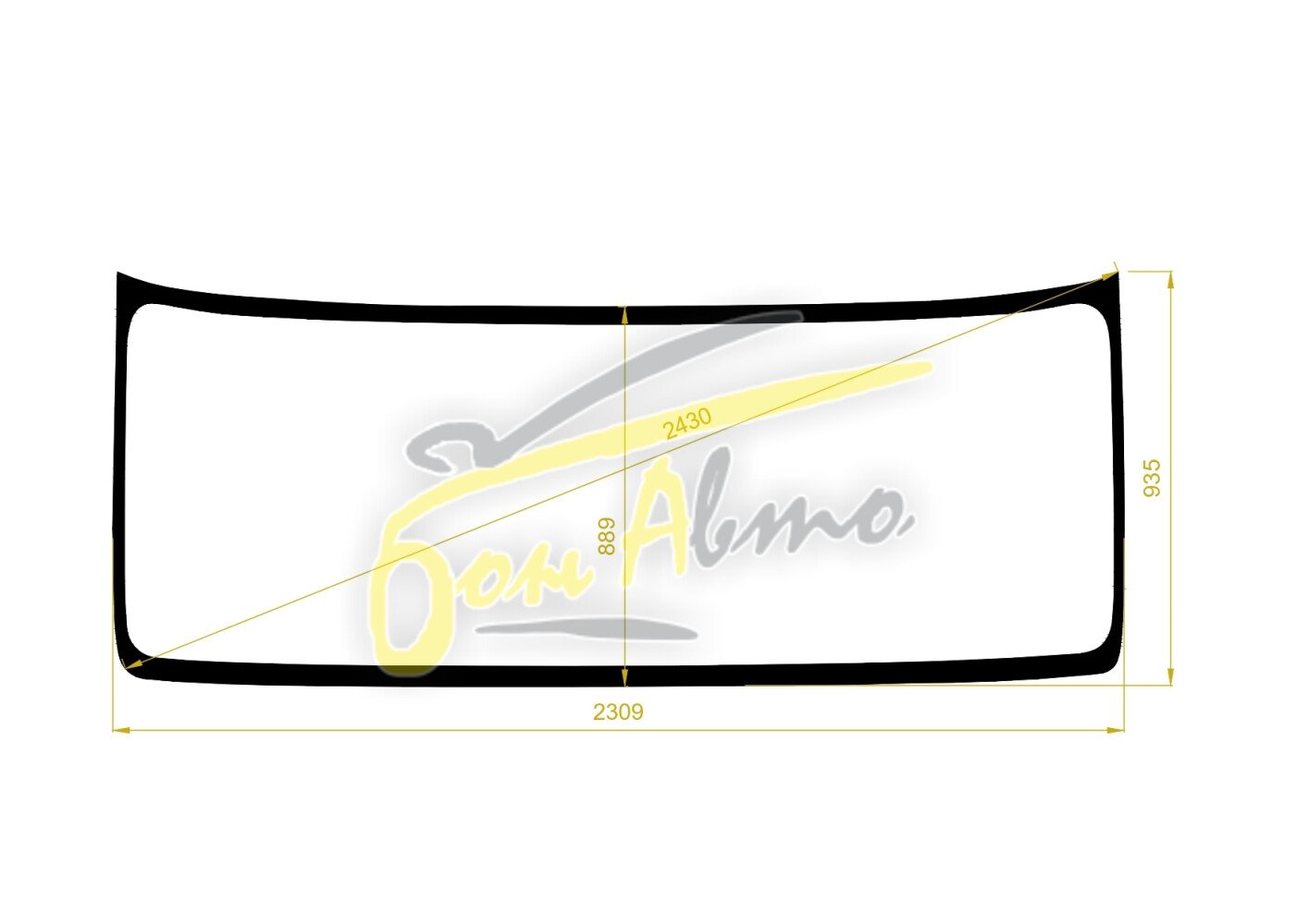Стекло лобовое JAC K7 2020- (2 вид-2309*935*2430) место под 1 камеру, место под датчик дождя,