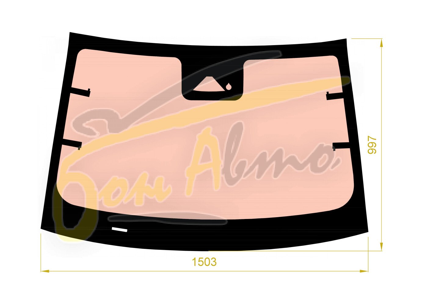 Стекло лобовое CHERY OMODA 5 2023- (LHD) полный обогрев, место под 1 камеру, место под датчик дождя,