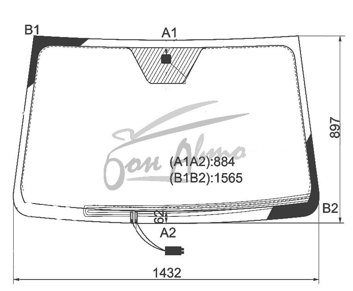 Стекло лобовое SSANGYONG ACTYON 2005-2011 (LHD) обогрев щеток