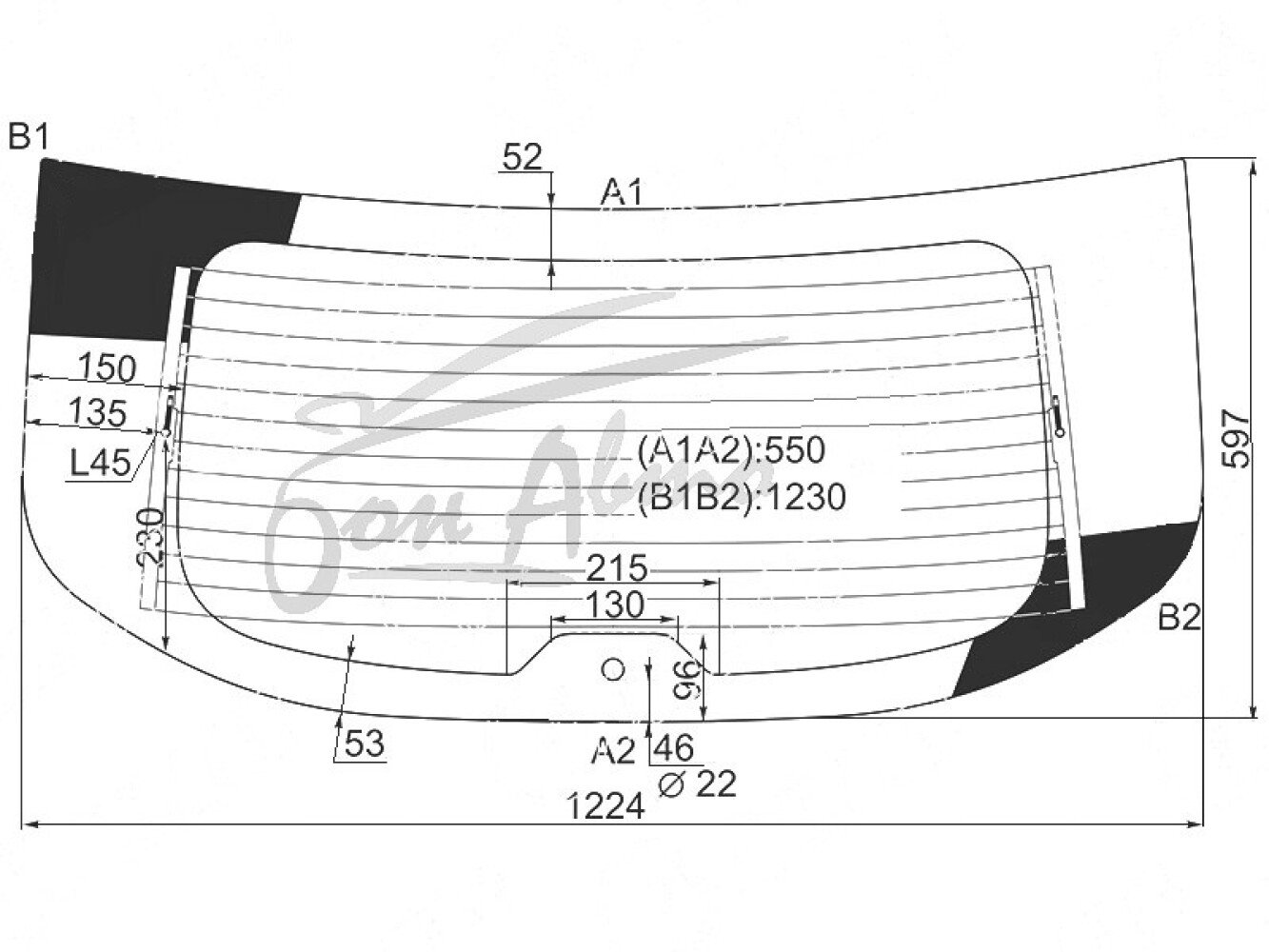 Стекло заднее с обогревом SSANGYONG KYRON 2007-2016 () 1224*597