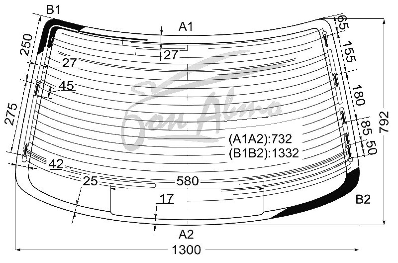 Стекло заднее с обогревом TOYOTA CROWN 1991-1995 (GS140)