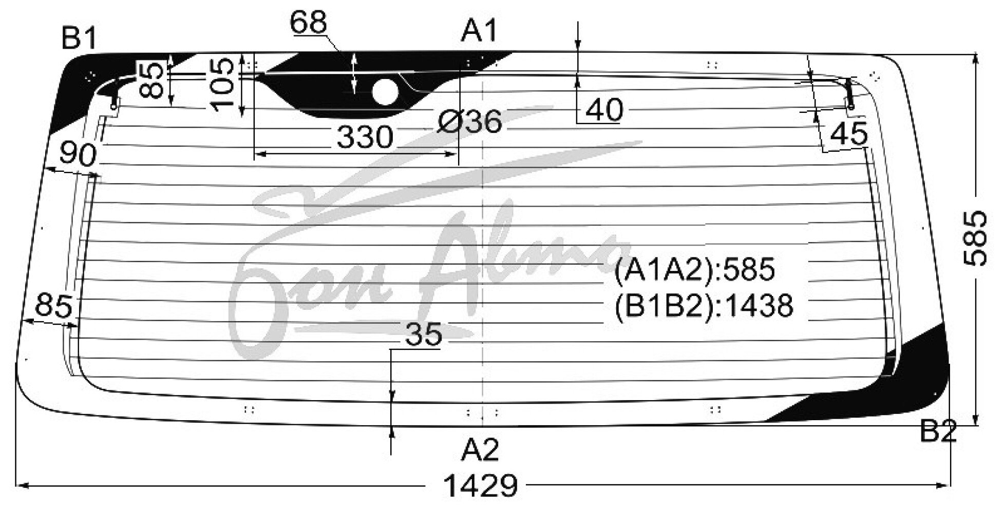 Стекло заднее с обогревом TOYOTA HIACE 2004-2019 (H200) 1 отверстие