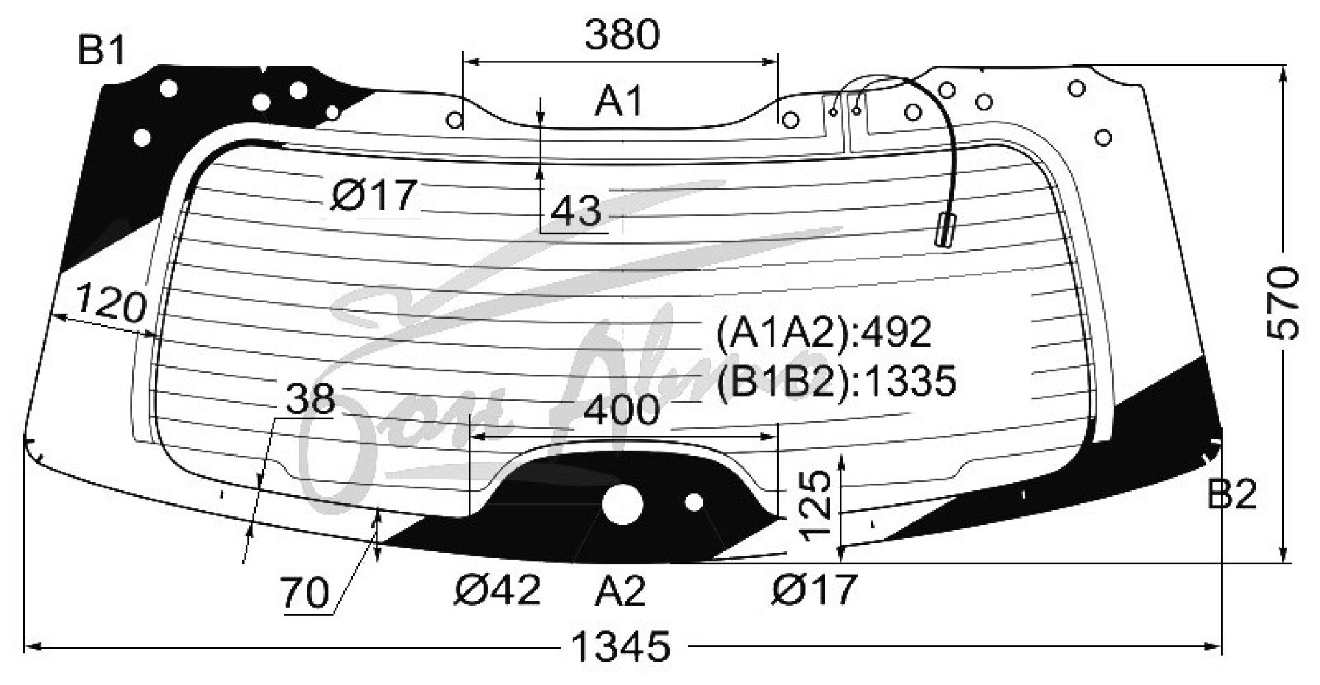 Стекло заднее с обогревом TOYOTA HIGHLANDER 2007-2013 (XU40) 14 отверстий