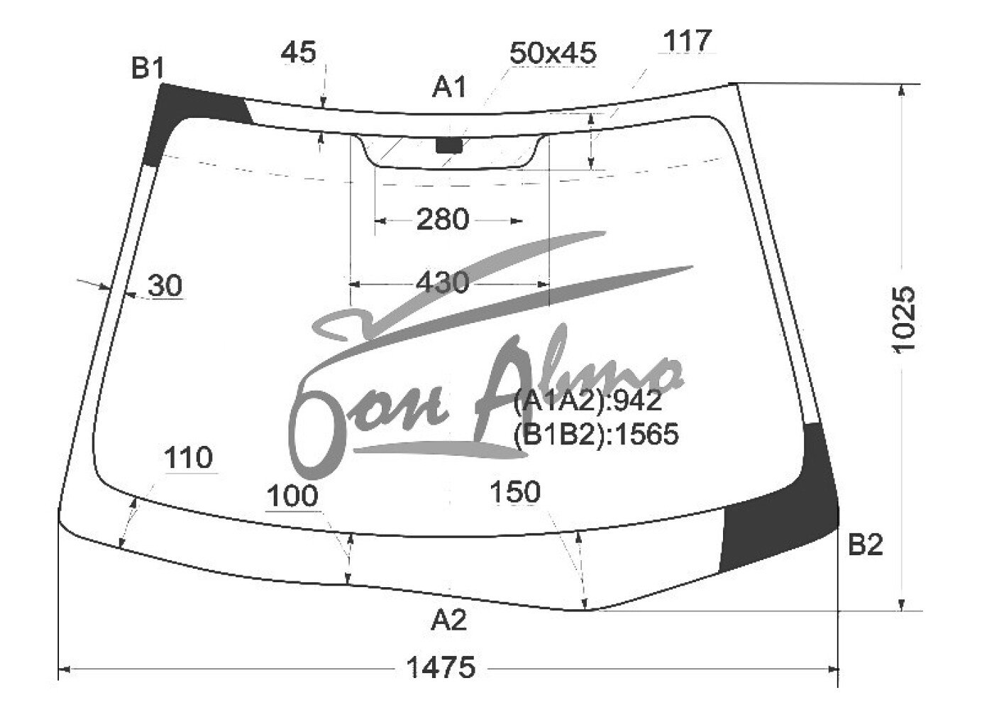 Стекло лобовое HYUNDAI AVANTE 2006-2011 (HD-LHD-4d sed)