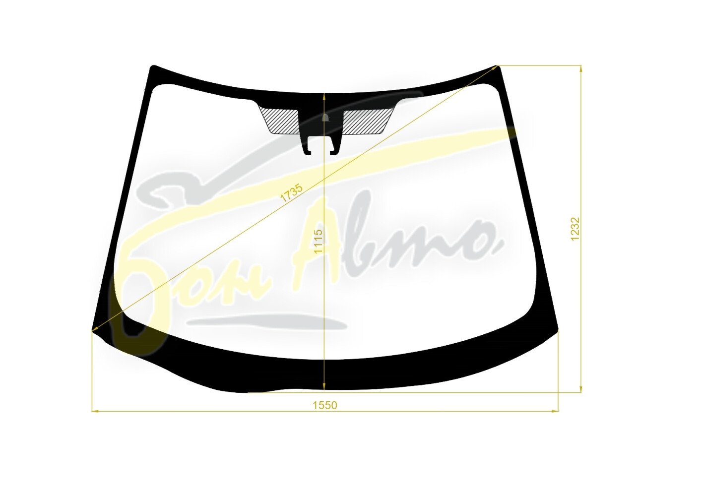 Стекло лобовое TOYOTA PREVIA 2005- (ACR50-RHD-2016) место под 1 камеру