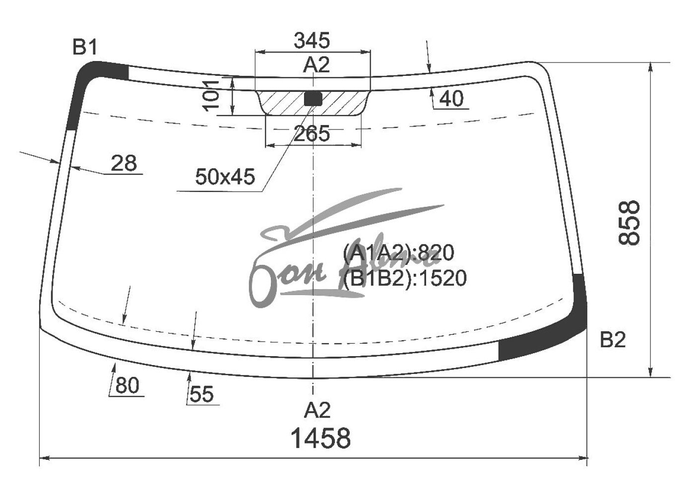 Стекло лобовое HYUNDAI PORTER 2004- () 1458*858*