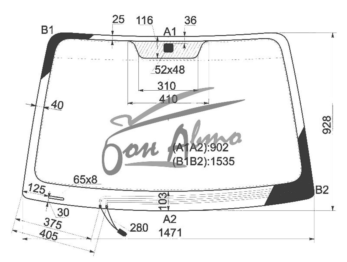 Стекло лобовое HYUNDAI TUCSON 2004-2009 (JM-LHD) обогрев щеток фурнитура,