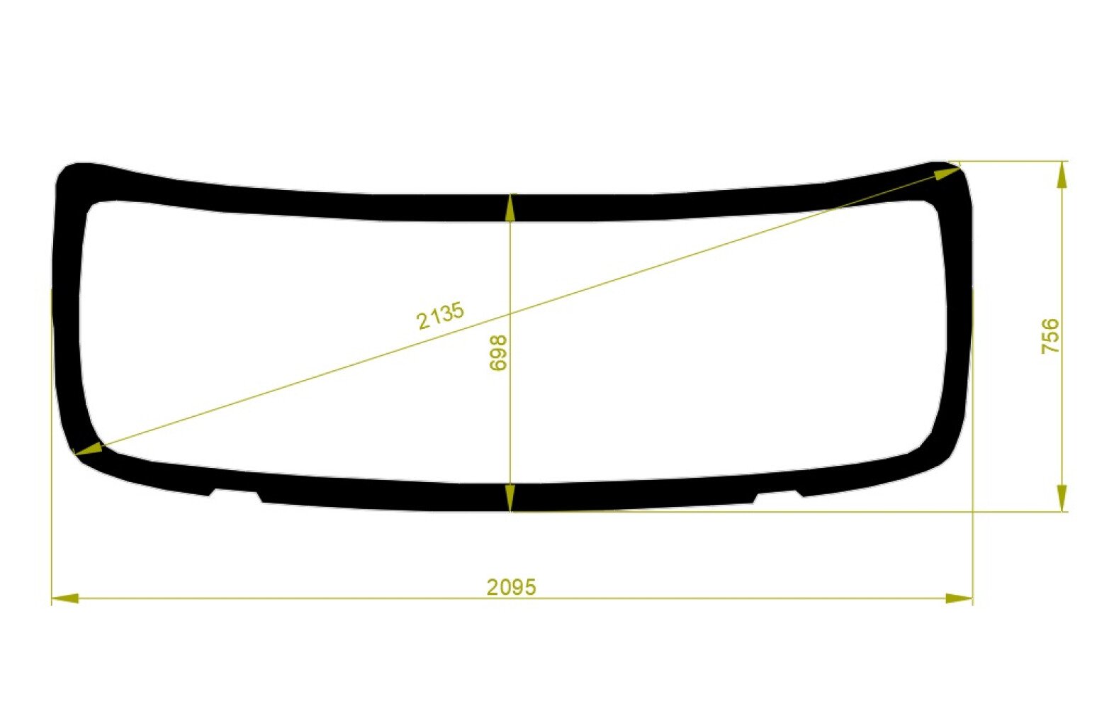 Стекло лобовое KENWORTH T2000 1996-2010 (2095*756*2135) молдинг,